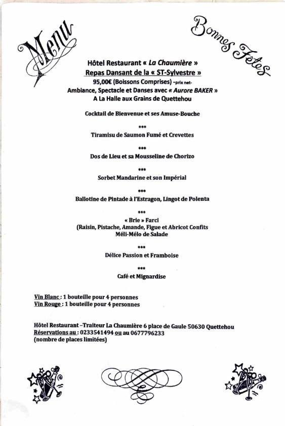 Menu de la St Sylvestre : Repas dansant à la "Halle aux Grains"