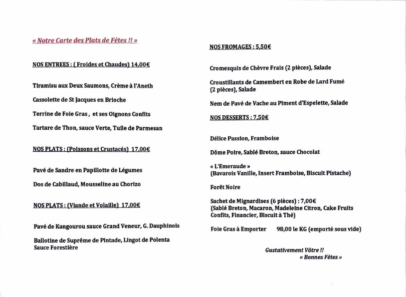 Ce menu est servi uniquement du lundi au jeudi le midi et le soir, le vendredi uniquement le midi et pas le week end et les jours fériés
